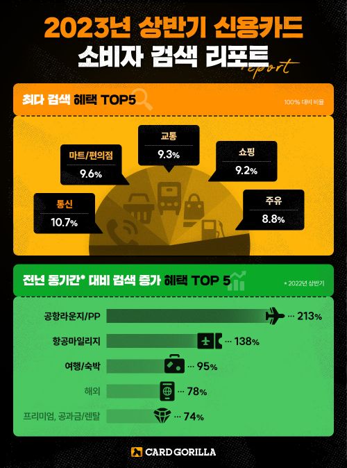 14일 카드고릴라에 따르면 이번 검색어 리포트는 1월1일부터 6월25일까지 카드고릴라 웹사이트 내 '혜택별 검색'에서 각 혜택이 검색된 횟수를 기반으로 작성됐다.