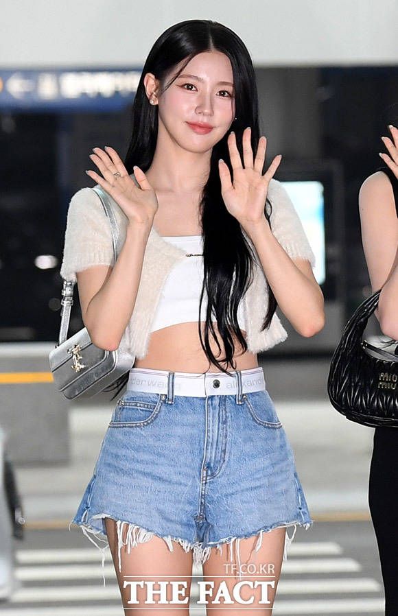 그룹 (여자)아이들 멤버 미연이 해외투어 일정을 위해 14일 오전 인천국제공항을 통해 태국으로 출국하며 포즈를 취하고 있다. /인천국제공항=남용희 기자