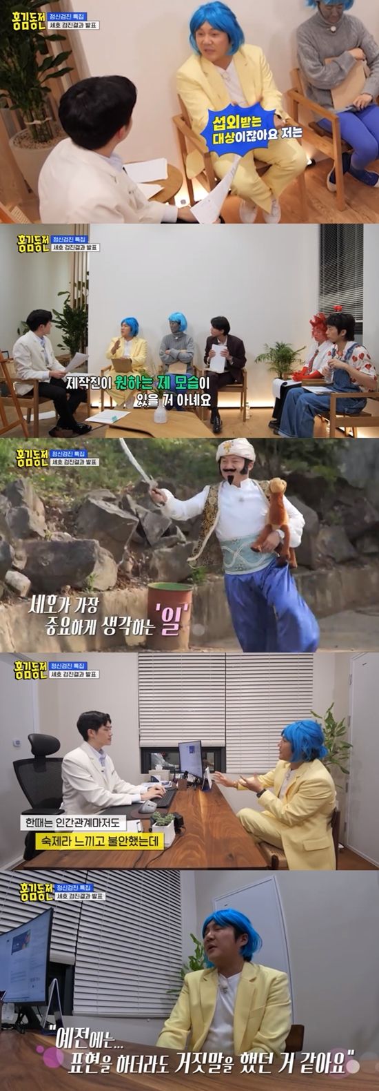 이날 '홍김동전' 멤버들은 앞서 진행한 사전 검사를 토대로 정신건강의학과에 방문, 면담 검진을 했다. 멤버들은 면담을 위해 등장한 정신과 전문의 김총기를 한마음으로 환영했다.