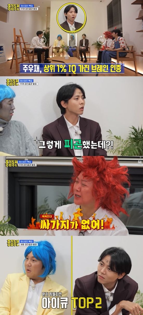 먼저 김총의 전문의는 "(주)우재님은 IQ가 134점"이라고 해 모두를 놀라게 했다. 김총의 전문의는 "이번에 검사한 성인용 지능검사 점수가 짜게 나온다. 134점이면 다른 지능검사에서는 140점 이상 나올 거다. 백분위로는 99%"라며 주우재가 상위 1%의 브레인임을 검증했다.