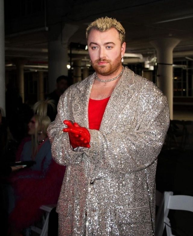 해당 영화 OST에 참여한 샘 스미스는 홍보 행사에 응원을 더하기 위해 자리한 만큼 평소 화려한 의상 대신 차분한 옷차림을 택한 걸로 보인다. 영화 주인공인 배우들을 더 돋보이게 하려고 배려한 것일 가능성도 있다.