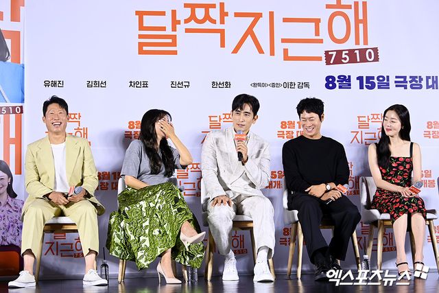 14일 오전 서울 광진구 롯데시네마 건대입구에서는 영화 '달짝지근해: 7510'(감독 이한)의 제작보고회가 진행됐다. 현장에는 배우 유해진, 김희선, 차인표, 진선규, 한선화와 이한 감독이 참석했다.
