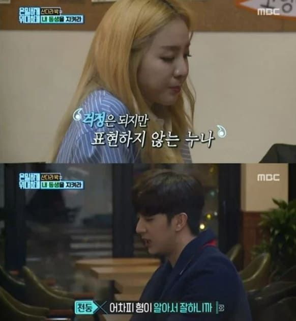 과거 동생 때문에 산다라박이 방송에서 울음을 터트리는 일도 있었는데요, 2017년 MBC ‘일밤 은밀하게 위대하게’에선 천둥이 누나인 산다라박을 속여 달라고 의뢰인으로 나왔습니다.