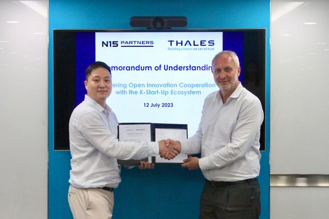 엔피프틴파트너스(N15파트너스)는 탈레스 코리아와 디지털 기술 분야의 한국 스타트업 생태계 지원을 위한 협력을 강화하기 위해 지난 12일 한남동에 위치한 탈레스 코리아 사무실에서 MOU를 체결했다고 밝혔다.