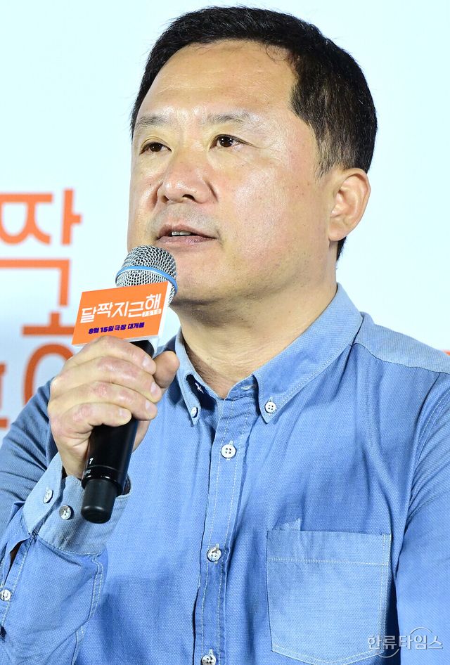이한 감독이 14일 오전 서울 광진구 롯데시네마 건대입구점에서 열린 영화 '달짝지근해: 7510' 제작보고회에 참석해 취재진의 질문에 답하고 있다.