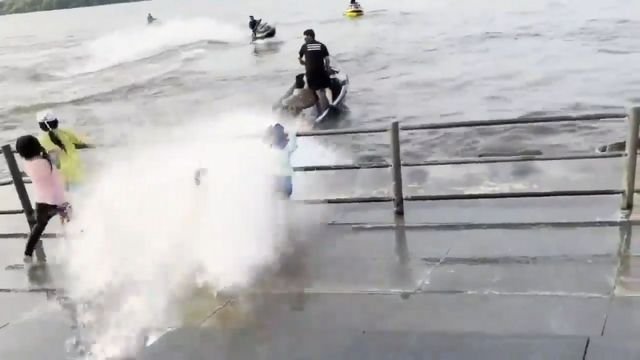 영상 속 제트보트에 올라타 있던 한 남성은 아이들을 슬쩍 보더니 모터 방향을 틀어 아이들이 서 있는 쪽으로 물을 뿌렸다. 물벼락을 맞은 아이는 수압을 이기지 못하고 그대로 날아갔고, 바닥에 부닥치며 고꾸라졌다.