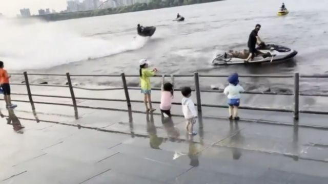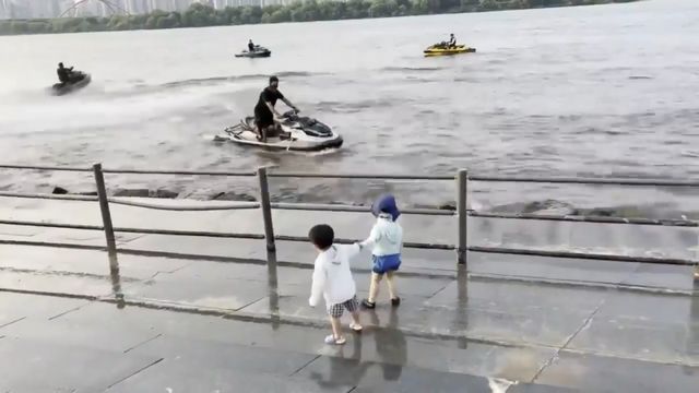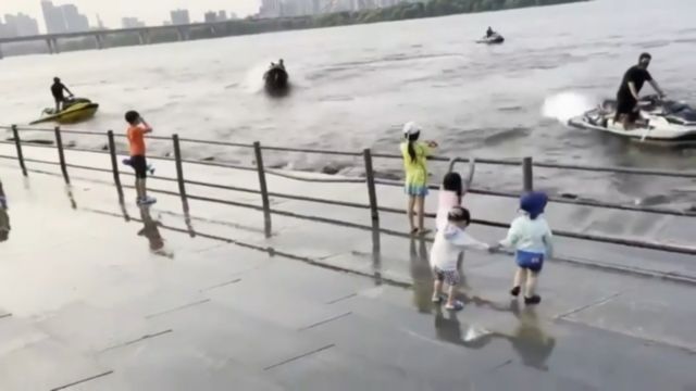 공개된 영상에는 한강에서 제트보트를 타는 사람들과 난간 근처에서 이를 구경하는 아이들 모습이 담겼다.