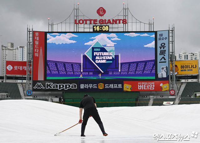 이날 퓨처스 올스타전은 경기 개시 시간을 2시간여 앞둔 오후 4시까지 진행 여부를 장담할 수 없었다. 전날부터 부산 지역에 많은 비가 쏟아지면서 그라운드 컨디션이 악화된 데다 빗줄기가 좀처럼 가늘어지지 않았다.