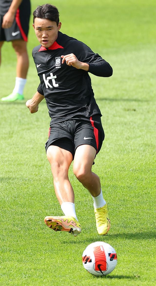 양현준이 지난해 9월 20일 파주 NFC(국가대표트레이닝센터)에서 패스 훈련을 하고 있다.