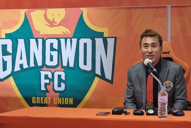 김병지 프로축구 강원FC 대표이사가 지난 1월 9일 강원도 춘천송암스포츠타운 주경기장 미디어 실에서 열린 기자 간담회에서 취재진 질의에 답하고 있다. / 이하 연합뉴스
