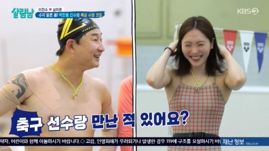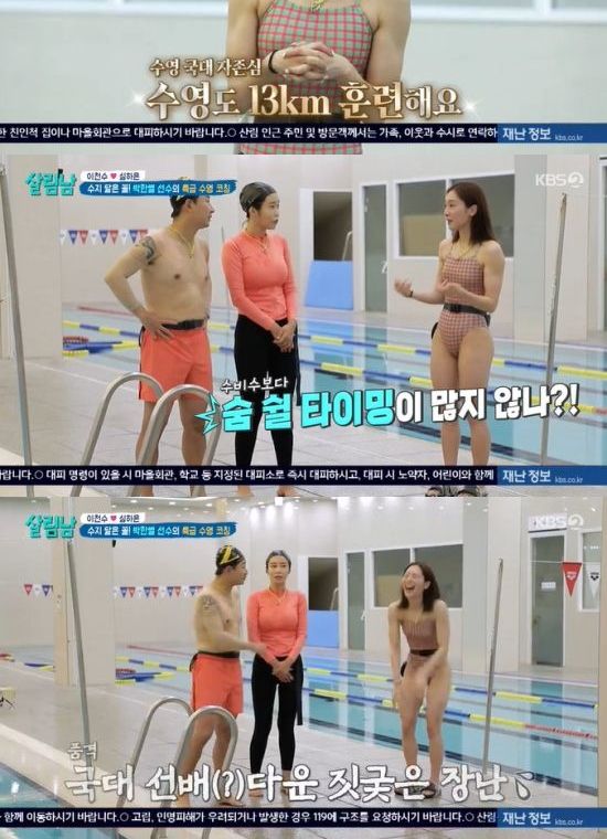 15일 방송된 KBS 2TV '살림하는 남자들 시즌2'(이하 '살림남2')에서는 이천수와 심하은이 박한별 선수에게 수영을 배우는 장면이 전파를 탔다.