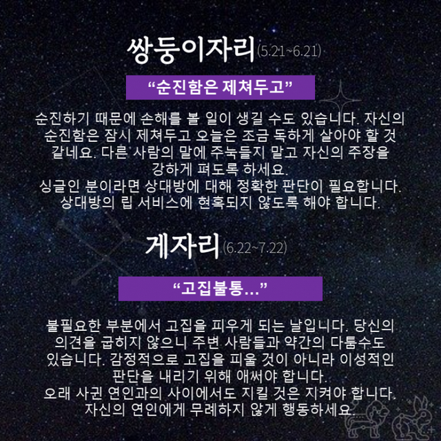 Δ쌍둥이자리 : 순진함은 제쳐두고…