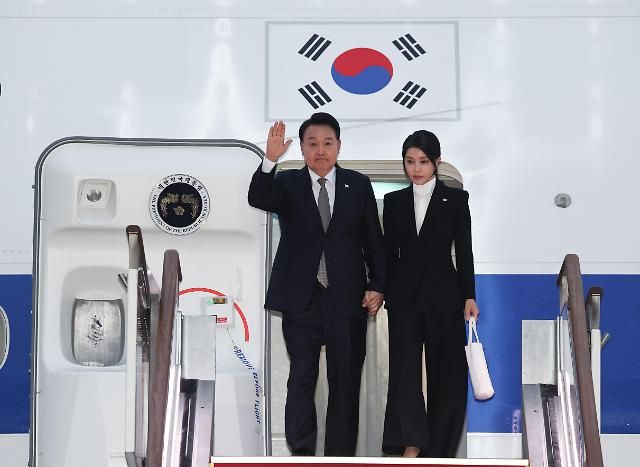 17日,结束对立陶宛、波兰、乌克兰访问的韩国总统尹锡悦及夫人金建希搭乘“空军一号”专机抵达城南首尔机场,在机场听取国民力量党党首金起炫对暴雨灾情的汇报。