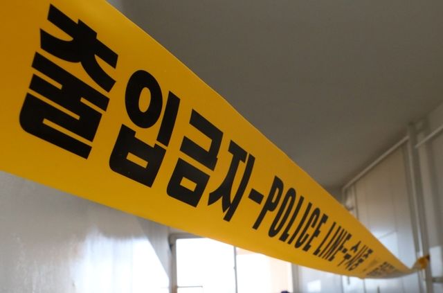 인천 남동구의 한 아파트에서 17일 오전 칼부림 사건이 발생했다. 사진은 사건 현장에 설치되는 폴리스라인. 기사 이해를 돕기 위한 이미지