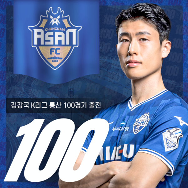 [풋볼리스트] 윤효용 기자= 충남아산프로축구단(구단주 박경귀, 이하 충남아산) 김강국이 K리그 통산 100경기 출전의 금자탑을 세웠다.