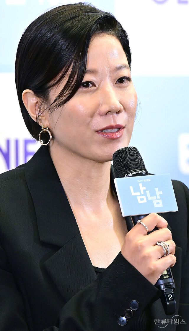 배우 전혜진이 17일 오전 서울 상암동 스탠포드 호텔에서 열린 지니 TV 오리지널 '남남' 제작발표회에 참석해 취재진의 질문에 답하고 있다.
