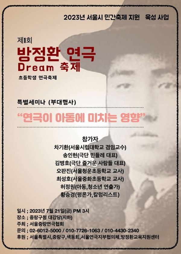 서울중랑연극협회가 주최하고 서울특별시가 후원하는 ‘방정환 연극 dream 축제’가 올해 7월과 9월 실시된다.