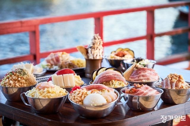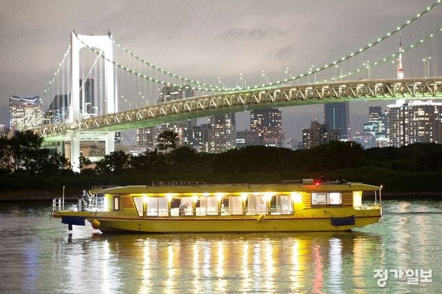 ▲ 도쿄 오다이바 지역을 둘러보는 코스로 운항하는 ‘몬쟈야카타부네’는 도쿄의 ‘레인보우 브리지’가 빚어낸 야경을 바라보며 도쿄의 소울푸드 ‘몬쟈야키’를 비롯한 다양한 메뉴를 무제한으로 즐길 수 있다