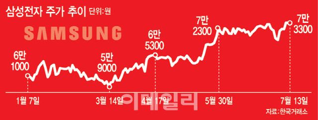 특히 외국인 투자자들의 매수세가 꾸준히 이어지고 있다. 외국인 투자자는 2분기 잠정 실적 발표 이후 이날까지 6000억원 가까이 삼성전자를 순매수했다. 같은 기간 개인 투자자들이 7800억원 넘게 삼성전자 주식을 순매도한 것과 대비된다. 외국인 투자자들은 올 들어 삼성전자 주식을 총 13조원 가까이 순매수했다.