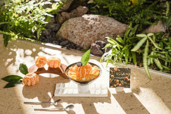 시그니처 메뉴도 특별하다. 제주의 귤을 테마로 만든 디저트 '귤빛찬란'은 그동안 경험해 보지 못한 새로운 제주 감귤의 매력을 발견할 수 있는 메뉴다. 이름처럼 귤빛이 반짝이는 이미지를 디저트로 표현했는데 부드러운 아이스크림에 특색의 귤 가공품인 '뀰과'가 아낌없이 올라갔다.