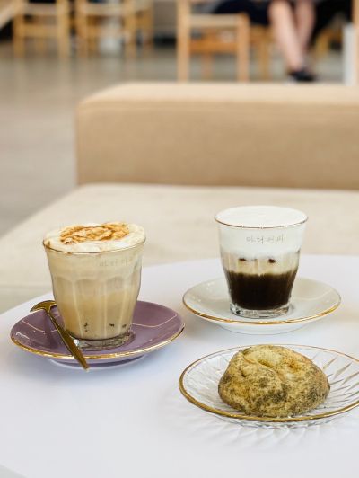 그 밖에 '우도 땅콩 아포가토', 제주 우뭇가사리와 흑임자로 만든 고소한 양갱 메뉴인 '돌하르방' 등 눈과 입이 모두 즐거운 메뉴들이 다채롭게 마련되어 있다. 제주 동굴을 형상화한 지하 1층 핸드드립 바에서는, 5가지 원두 중 하나를 선택해 바리스타가 삼다수로 직접 내린 핸드드립 커피를 맛볼 수 있다. 은은한 조명, 잔잔한 물소리와 함께 커피를 마시다 보면 절로 제주 동굴에 온 듯한 느낌을 받는다.