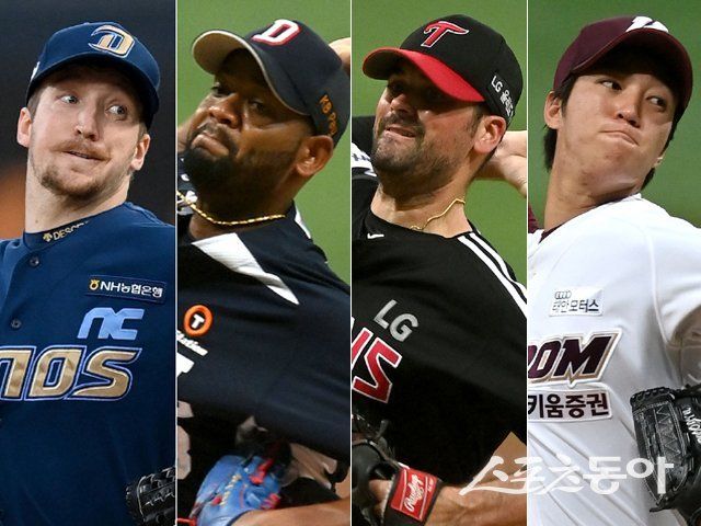 NC 페디, 두산 알칸타라, LG 플럿코, 키움 안우진(왼쪽부터). 스포츠동아DB