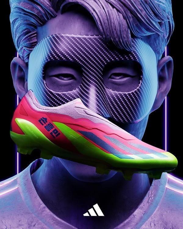 “HMS PACK”鞋身为炫目的霓虹色,阿迪达斯称设计灵感来自于活力四射的首尔夜景,鞋身侧面印有孙兴慜的韩文姓名。