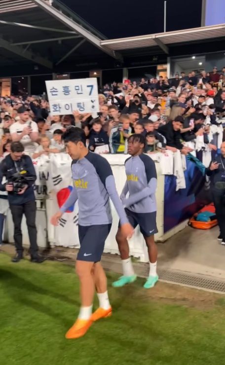 공개 훈련이 이뤄지면서 많은 현지 팬들은 토트넘 선수들을 보기 위해 경기장을 찾았는데, 이때 손흥민 팬들은 직접 '손흥민 7, 사랑해'라고 한글로 적어 왔다.