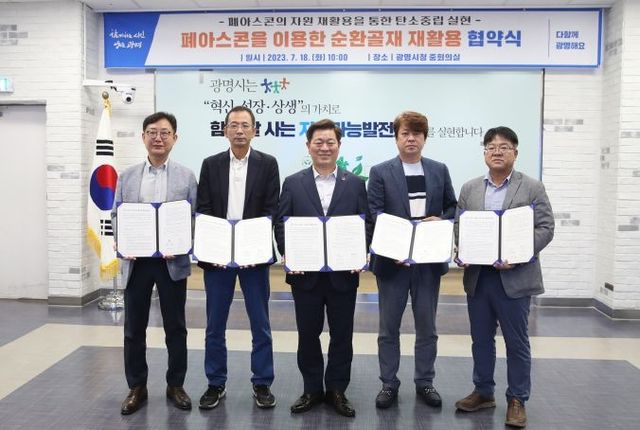 시는 18일 시청 중회의실에서 폐아스콘 재활용제품 생산업체 4곳과 ‘순환골재 재활용 협약’을 체결했다.