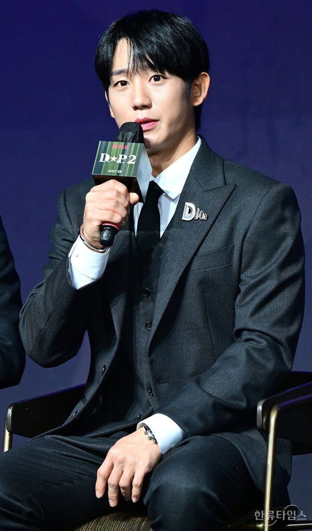 배우 정해인이 18일 오전 서울 삼성동 그랜드 인터컨티넨탈 서울 파르나스에서 열린 넷플릭스 드라마 'D.P. 시즌2' 제작보고회에 참석해 취재진의 질문에 답하고 있다.