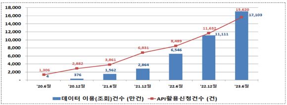 18일 금융위원회에 따르면 지난 6월 기준 금융 공공데이터 이용 건수는 1억7천103만건으로 집계됐다. 출범 당시엔 4만 건에 불과했다. 같은 기간 오픈 API 활용 건수도 1만5천620건으로 늘었다.