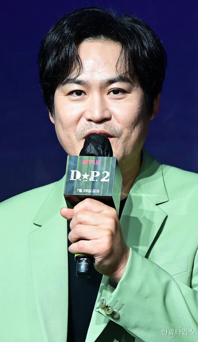 배우 김성균가 18일 오전 서울 삼성동 그랜드 인터컨티넨탈 서울 파르나스에서 열린 넷플릭스 드라마 'D.P. 시즌2' 제작보고회에 참석해 취재진의 질문에 답하고 있다.