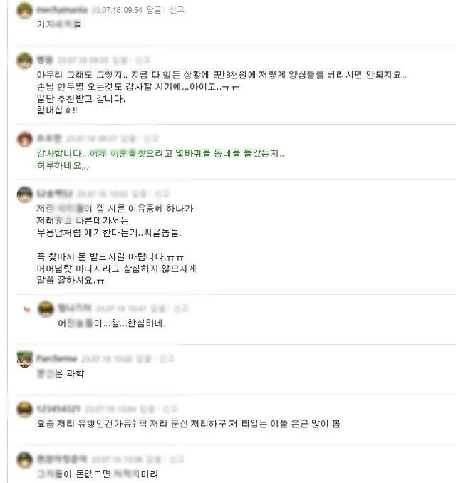 사연을 접한 네티즌들은 “다 힘든 상황에 양심 버리면 안 되지”, “문신 저게 뭐냐”, “꼭 잡아서 돈 받기를 바란다”, ‘어머님 잘못 아니시니 상심하지 않게 잘 말씀드려라”, “돈 없으면 다른 데를 가지 왜 먹튀를 하냐”며 댓글을 남겼다.