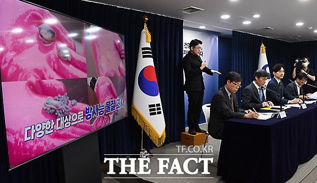 [더팩트ㅣ임영무 기자] 박성훈 해양수산부 차관이 18일 오전 서울 종로구 세종대로 정부서울청사에서 열린 후쿠시마 오염수 방류 관련 일일 브리핑 및 향후계획 발표에 참석해 수산물 안전관리 상황에 대해 브리핑하고 있다.