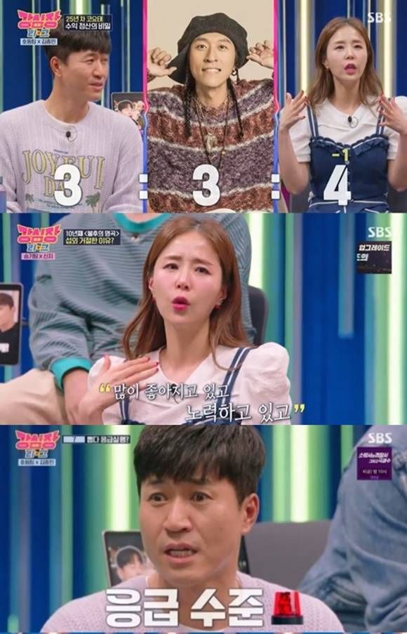 18일 방송된 SBS '강심장리그'에서 신지가 무대공포증을 고백했다. /SBS 방송화면 캡처