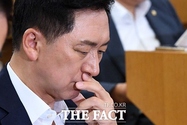 [더팩트ㅣ국회=남용희 기자] 김기현 국민의힘 대표가 19일 오전 서울 여의도 국회 의원회관에서 열린 '한국과 호주 함께 여는 미래' 한-호주 경제·안보 협력 증대 방안 모색 토론회에 참석해 생각에 잠겨 있다.
