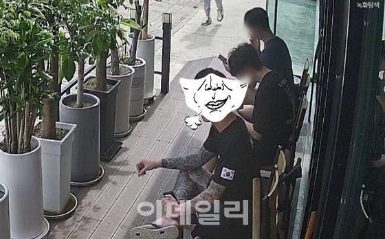 A씨가 공개한 영상 속에는 세 명의 남성이 있는 가운데 한 명은 온몸에 문신을 하고 다리를 꼰 채 담배를 피우고 있고 옆의 두 남성이 나란히 앉아 있다.