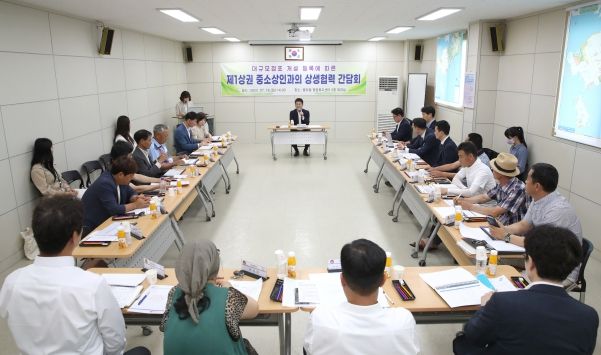 김정헌 인천 중구청장은 지난 18일 용유동 행정복지센터 회의실에서 을왕리·왕산·선녀바위 해변 상인, 인스파이어 이진우 상무, 강대석 이사 등과 ‘대규모점포 개설등록에 따른 제1상권 중소상인과의 상생협력 간담회’를 가졌다.