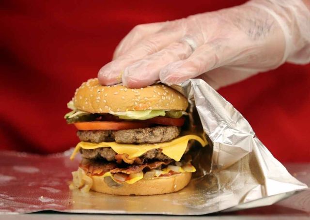 패티 2장과 치즈, 베이컨, 양상추, 토마토 등이 들어간 파이브 가이즈 베이컨 치즈버거. / 이하 뉴스1