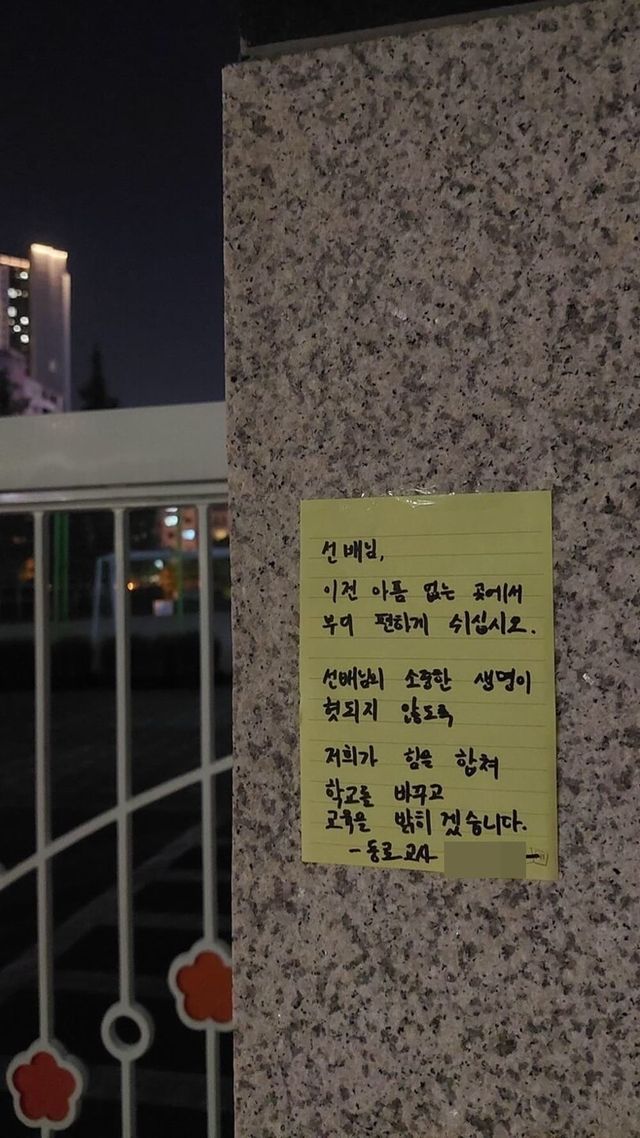 이 같은 상황이 알려지며 전국의 교사들은 고인을 추모하고 진상 규명을 촉구하는 의미를 담은 근조화환을 학교 정문으로 보내고 있다. 교사들은 20일 오후 3시부터 국화와 포스트잇 등을 구비해 자발적으로 학교 앞으로 모여 추모에 나설 예정이다.