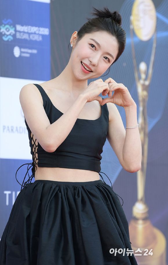'귀여운 볼하트' 배우 주현영이 19일 인천 파라다이스시티에서 열린 제2회 청룡시리즈어워즈 레드카펫 행사에 참석하고 있다. [사진=정소희 기자]