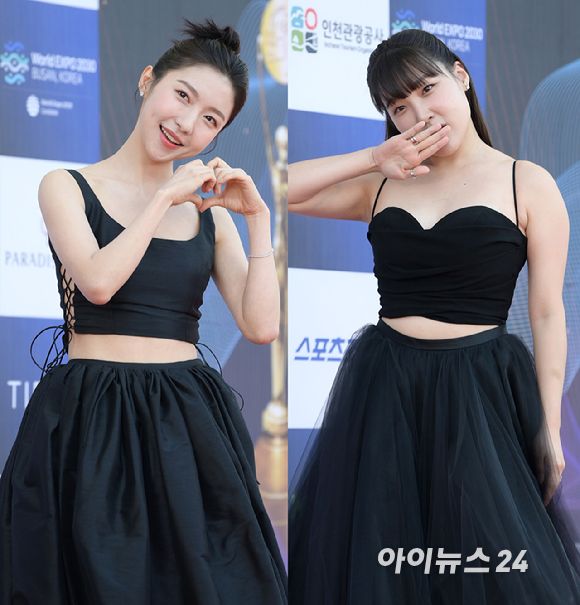 각 분야 'MZ세대 아이콘' 배우 주현영과 코미디언 이은지가 19일 인천 파라다이스시티에서 열린 제2회 청룡시리즈어워즈 레드카펫 행사에 참석하고 있다. [사진=정소희 기자]