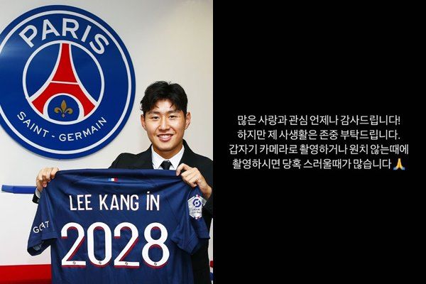 이강인이 프랑스 최고 명문팀에 입성하게 되자 팬들의 관심은 더욱 고조됐다. 이 과정에서 사생활 침해 문제가 생겨 직접 사생활 보호 당부에 나선 것으로 보인다.