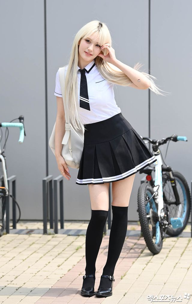 이날 '아는 형님' 녹화에 참석한 가수 전소미가 출근길에 포토타임을 갖고 있다.