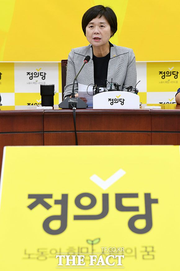 [더팩트ㅣ국회=남용희 기자] 이정미 정의당 대표가 20일 오전 서울 여의도 국회에서 열린 상무집행위원회 회의에서 발언을 하고 있다.