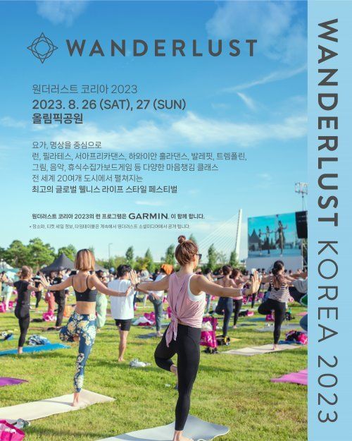 이번 원더러스트 코리아는 요가와 명상을 중심으로 런, 필라테스, 서아프리카댄스, 하와이안 훌라댄스, 발레핏, 트렘폴린, 애니멀 플로우, 그림, 음악, 휴식수집가보드게임 등으로 구성됐다. 이틀간 약 80 여개의 클래스가 열릴 예정이다.
