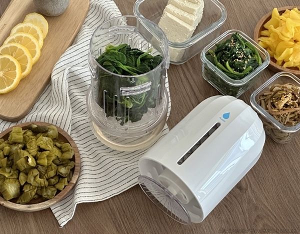 해당 제품은 별도의 전기를 사용하지 않는 제품이기에 열이 발생하지 않아 식재료 변질 없이 신선하게 탈수할 수 있다. 지속적으로 힘을 가해야 하는 레버 방식이 아닌 뚜껑을 한번 닫아 놓으면 자동으로 압력이 가해지는 압착형 탈수 방식으로 꾸욱 눌러놓고 몇 분 정도 기다리면 끝이다.