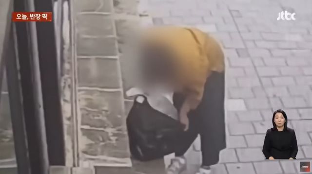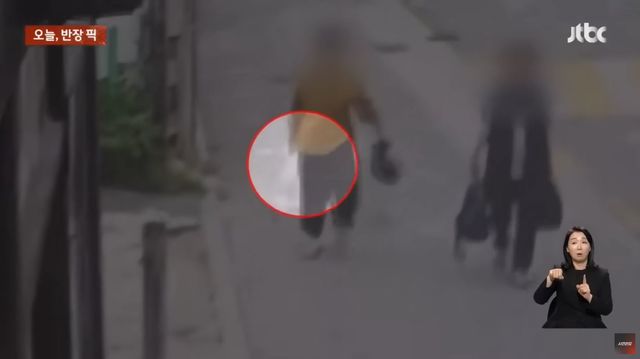 양손에 각각 검은 봉지, 흰 봉지를 들고 걷던 여성은 이윽고 길을 멈춘 뒤 흰 봉지를 검은 봉지 속으로 집어넣는 모습을 보이기도 했다.