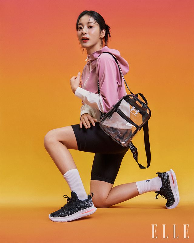 UA 커리 캐리커처 톱, UA 스포츠스코트 플리티드 스커트, UA Flow 벨로시티 3 러닝화 모두 Under Armour.