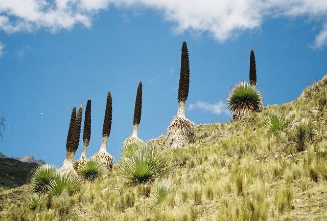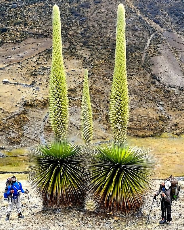 이 장엄한 식물은 볼리비아와 페루의 안데스 산맥의 불모의 고원이 원산지이며 3200~4800m 사이에서 자랍니다.